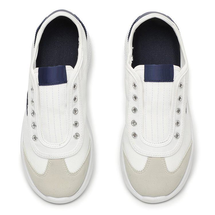 This is a pair of children's canvas shoes. It is different from the traditional canvas shoe design. The appearance is more individualized, and the color contrast design is more fashionable. It is popular with boys and girls.The shoe upper is mainly made of canvas material, and the front and back heel parts of the shoe are made of leather material, so the shoe shape is more stable.This shoe is a laceless design,It is slip on, Low-cut version,easy to put on and take off.The midsole of the shoe is made of MD material, There is a lattice pattern on the outside of the midsole ,the sole is elastic and soft, suitable for children's feet.The outsole material of the shoe is rubber, and the sole has a polygonal convex pattern. It has strong grip, anti-skid and abrasion resistance.This is a pair of children's flat casual shoes, suitable for children's daily wear in spring, summer and autumn, go out to play, go to school, etc.